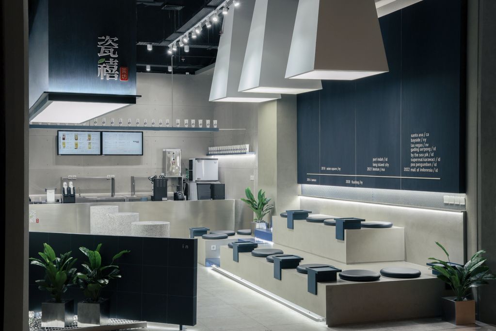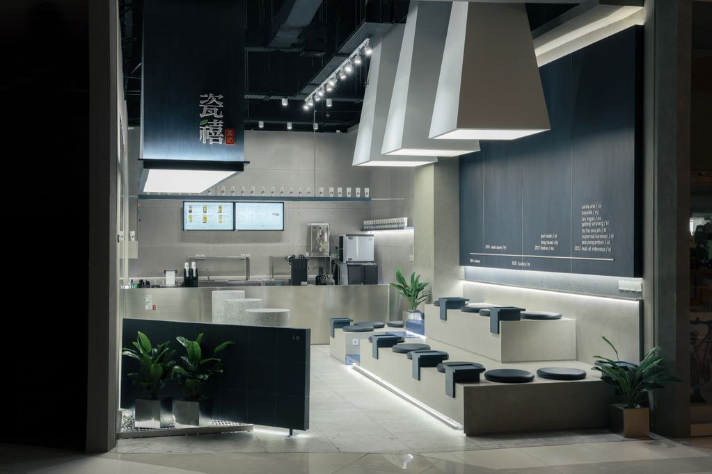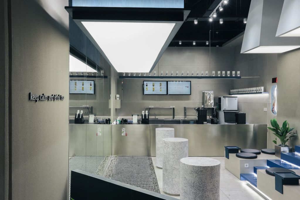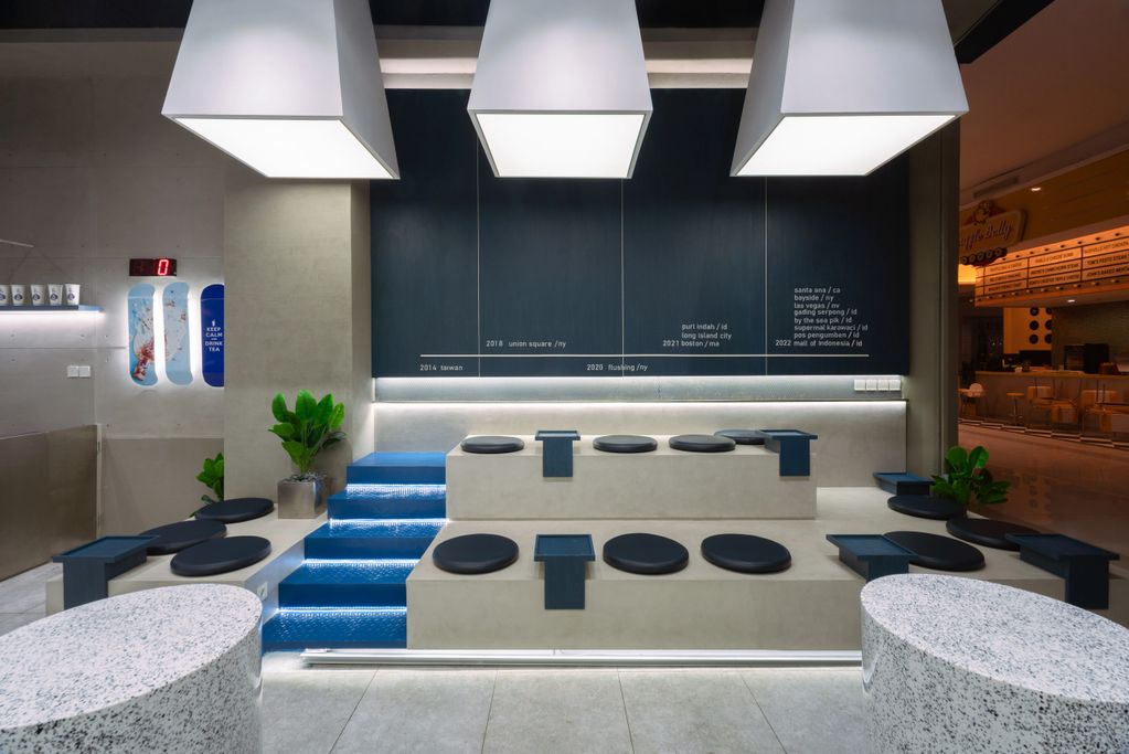 did a lot of experimental approaches for this store about how to making in between space to be multi functional area, blue-woody finishing plywood, create something attached and dettached, etc